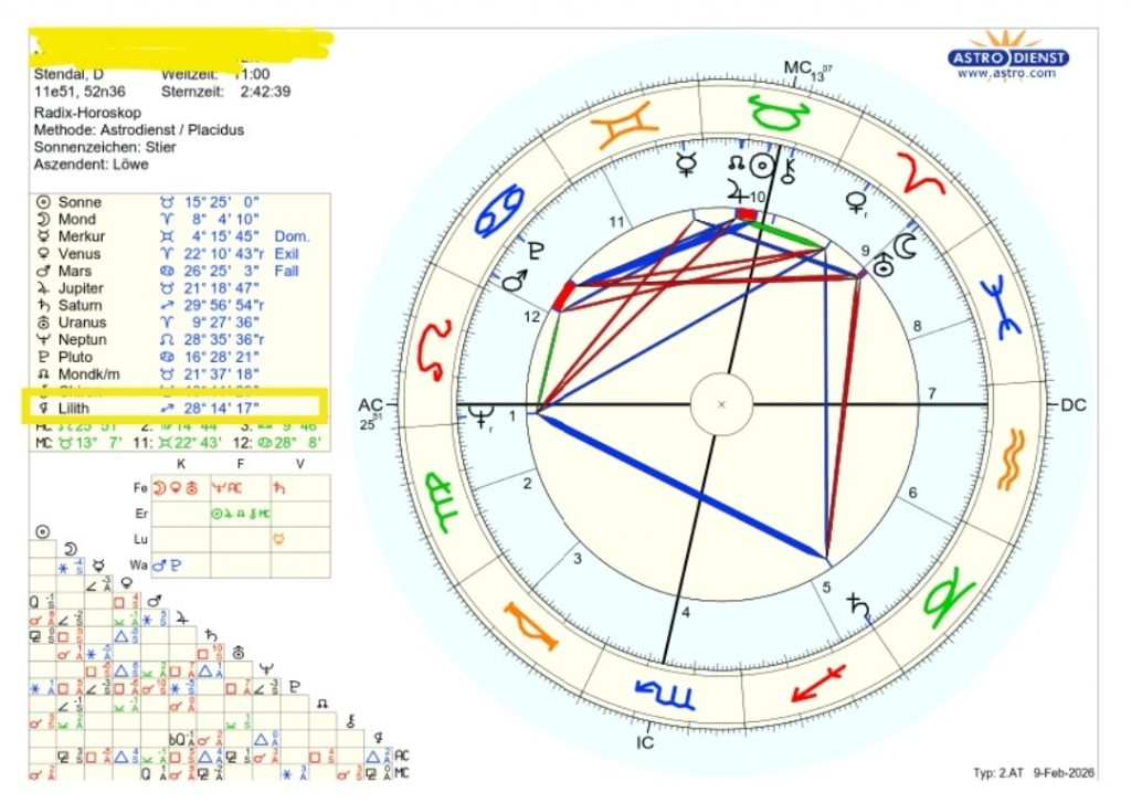 Im Radix oder auch in mittlerweile guten Human Design Chart Rechnern findest du die Position deiner Lilith.
